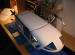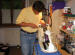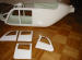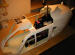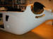 Nun werden zwei GFK-Schalen mit einem Widia-Trennschleifer und Schleifpapier bearbeitet und anschließend so eingepaßt, daß sie exakt auf den Rumpfkorpus passen. Sie sollen das Rumpfdach bilden und mit Schrauben am Korpus befestigt werden. Beim Festlegen der Schraubenpositionen zeigt ein Foto des Originals den Bereich, an dem später der POLIZEI-Schriftzug angebracht werden wird. Somit wird verhindert, daß die Schrauben die Optik des Schriftzugs beeinträchtigen. Die Mechanik der Turbinen sitzt nur provisorisch und unbefestigt an ihrem Platz. Die Abgasrohre sind noch viel zu lang und werden später noch gekürzt.
