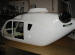 Im folgenden Arbeitsschritt wird das Kufengestell montiert. Auch hier ergibt sich zunächst kein eindeutiger Bezugspunkt zum Festlegen der Schraubenpositionen auf der Rumpfunterseite. Deshalb wird die Mechanik der Turbine provisorisch auf ihre Trägerschienen montiert, diese Einheit in den Rumpf eingesetzt und der Rumpf lose auf das Kufengestell positioniert. Mit Hilfe einer Schieblehre wird die Mechanik so im Rumpf ausgerichtet, daß sie sich exakt symmetrisch im Rumpf befindet. Da das Kufengestell später mit den Trägerschienen der Mechanik verbunden wird, ergibt sich nun für jede Schraubenposition ein eindeutiger Bezugspunkt und die Schraubenlöcher können in den Rumpf gebohrt werden.