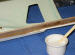 Der Innenausbau erfolgt im Rohbaustadium überwiegend auf der Basis von Flugzeugsperrholz. Befestigungs- und Trägerspanten dienen zur Aufnahme und Anbindung der mechanischen Komponenten, Verstärkungsspanten und Verstrebungen sorgen später für eine robuste und vibrationsarme Hubschrauberzelle. Die Teile werden mit einer Laubsäge aus 4mm starken Sperrholzplatten ausgeschnitten, mit Feilen und Schmirgelpapier eingepaßt und zunächst mit einem schnelltrocknenden Zweikomponentenkleber punktuell befestigt. Im folgenden Arbeitsgang wird mit einer speziellen Epoxydharzmischung** eine dauerhafte und hochbelastbare Verbindung zwischen Holzteil und Rumpfinnenwand hergestellt.