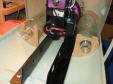 Das Gestell für den 0,5 Liter fassenden Hoppertank wird aus Sperrholz gebaut. Es dient gleichzeitig als Aufnahme für die Kerosinpumpe und das Kraftstoffventil, die beide mit Kabelbindern auf der Sperrholzplatte befestigt werden. Der Kraftstoff-Filter hängt frei schwebend in der Kraftstoffleitung zwischen Pumpe und Ventil. Die gesamte Einheit wird mit Schrauben an den schwarz eloxierten Längsträgern der Turbinenmechanik befestigt und kann im Servicefall als kompakte Einheit leicht entnommen werden.