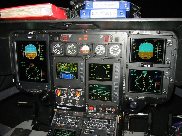 Höhenmesser, künstl. Horizont, Uhrzeit, Geschwindigkeit, Rotordrehzahl, Kompaß