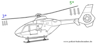 Ein Hubschrauber verfügt in der Regel über einen Haupt- und einen Heckrotor, bei denen die Anstellwinkelwinkel der Rotorblätter im laufenden Betrieb geändert werden können. Somit können die Grösse und indirekt auch die Richtung des Schubs gesteuert werden.
